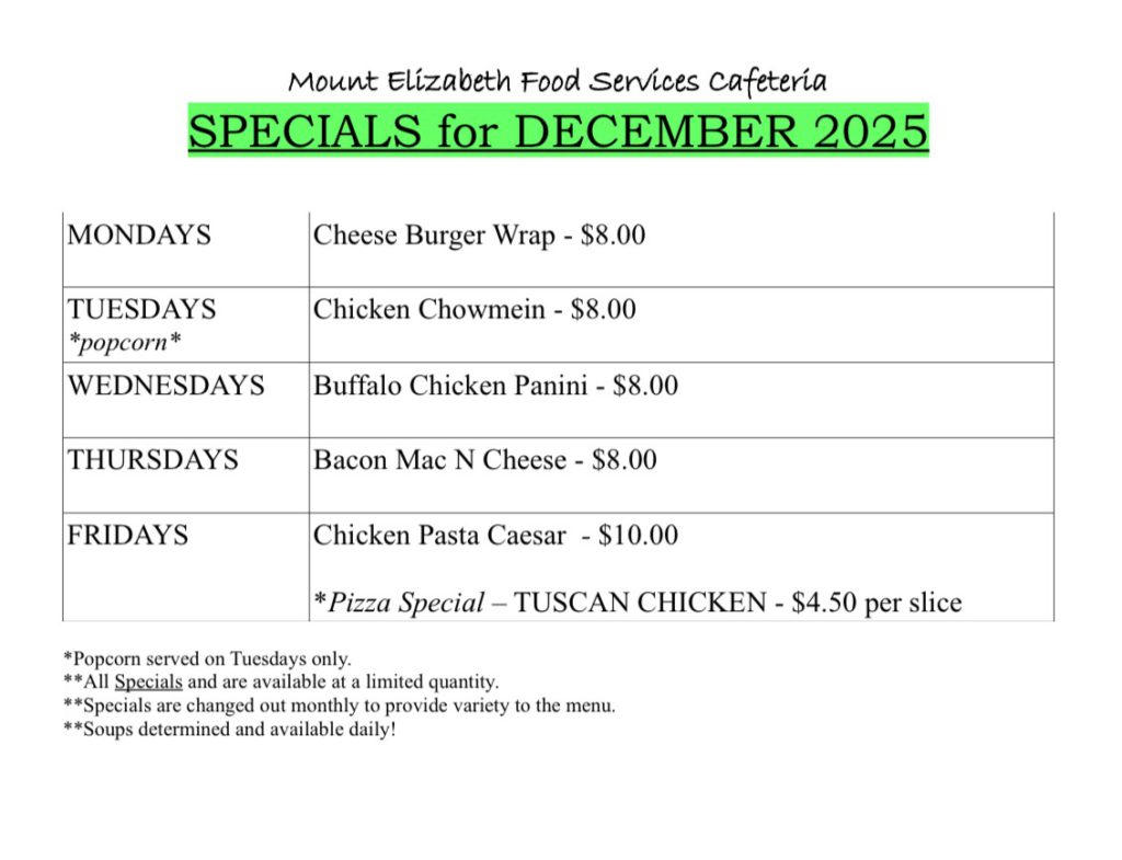 For as little as $5.00/day, you will not have to worry about what to make for lunch every day. Don’t worry, MEMSS Cafeteria is still operating with cash purchases as well. For more information, please contact: Mena Klonarakis/MEFS @ mefsklon@hotmail.com.